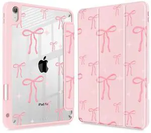 May Chen for iPad Air 11-inch M4/M3/M2 (2026/2025/2024), iPad Air 5th/4th 10.9 Inch - Shockproof Cover with Clear Back Shell & Penceil Holder Auto Wake/Sleep Stand Cover, Pink Bows