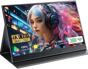 UPERFECT 15.6" 4K UHD Portable Monitor, 3840x2160, HDR, 100% AdobeRGB, 400cd/m², USB-C HDMI IPS FreeSync, Built-in Speakers, VESA Mount, Smart Case Included for Laptop, PC, Mobile - SilverLimited time offer, ends 01/11