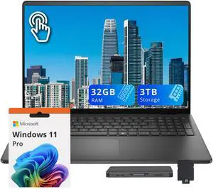 Dell 16" FHD+ Touchscreen Business Laptop, Intel Core 7 150U, 32GB RAM, 3TB Storage(2TB SSD+1TB Docking Station Set), Intel Graphics, Backlit Keyboard, Numeric Keypad, Windows 11 Home, Black