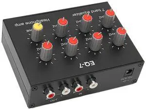 Car Digital Equalizer, Dual Channel DC5V-12V 7-Band Sound Equalizer 100-240V Car Aluminum Alloy Treble Bass Adjustment