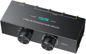 YGiTK 4-Way Stereo Audio Switcher 4-in-1-Out/ 1-in-4-Out Bi-Directional 3.5mm Aux & RCA L/R Audio Switch Selector Box with Off Button for Speaker Headphones Amplifiers CD Player Turntable Computer