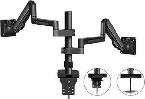 Dual Monitor Articulating Desk Mount Arm Stand - Vertical Stack Screen Supports Two 13 to 34 Inch Computer Monitors with C Clamp