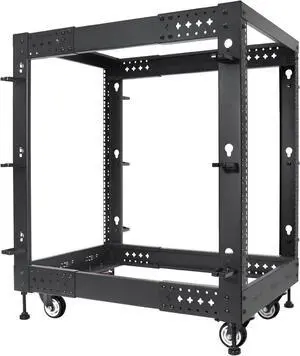 RIVECO 9U Open Frame Server Rack with Casters- Heavy Duty 4 Post Quick Assembly 19-inch, Stereo Rack Network Cabinet Black