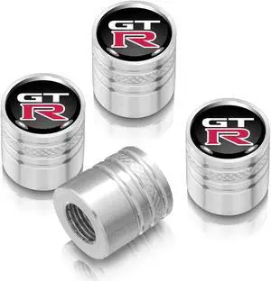 Nissan GT-R Black on Silver Aluminum Cylinder-Style Tire Valve Stem Caps