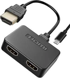 HDMI Splitter 1 in 2 Out, 4K HDMI Hub 2.0 Video Duplicator with 2.5ft USB Power Cable and Adapter, Supports 4K@30Hz UHD for TV, Monitor, Projector, PS4, Xbox, Blu-Ray  Mirror Mode Only