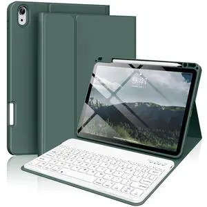 kenke Keyboard Case for iPad Air 11 Inch M4/M3/M2 2026/2025/2024, iPad Air 5th/4th Generation 10.9 Inch 2022/2020, Stand Folio Slim Cover with Magnetically Detachable Wireless Keyboard, Dark Green