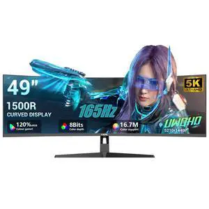 GAMEPOWER DQ49 inch Curved Ultrawide Gaming Monitor, 1Ms, 120Hz Refresh Rate, 32:9, DQHD, 5K 5120x1440p, R1800, 99% sRGB, HDR400, DisplayPort, HDMI, FreeSync, Gsync, Height - Tilt Adjustable