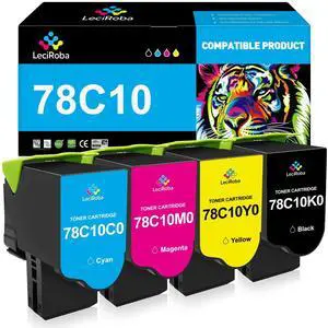 LeciRoba Replacement for Lexmark 78C10K0 78C10C0 78C10M0 78C10Y0 78C10 Toner Cartridge for Lexmark CS421dn CS521dn CS622 CS622de CX421adn CX522 CX522ade CX622ade CX625ade CX625adhe Printer (4-Pack)
