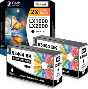 Compatible 53464 Ink Cartridge for Primera 53461 53462 53463 53464 Color Ink Replacement for Primera LX1000 LX2000 Color Label Printers, 2 Black