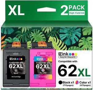 62XL Ink Cartridge High-Yield Remanufactured for HP Ink 62 XL 62XL Ink Cartridge Combo Pack to Use with Envy 5540 5640 5660 7644 OfficeJet 5740 5741 8040 200 250 Series Printer (1 Tri-Color, 1 Black)