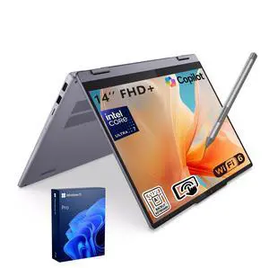 Lenovo IdeaPad 5 AI-Powered Business 2-in-1 Laptop, 14" FHD+ Touchscreen, Ultra 7 255U, 16GB Onboard RAM, 1TB SSD, Wi-Fi 6, Win11 Home, Backlit, Thin & Quiet Design, Grey