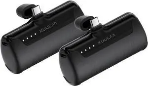 2 Pack Portable Phone Charger with Built-in USB-C Plug 4500mAh Mini Portable Charger Power Bank Small Battery Pack for iPhone 15/16/17 S22/S23 & Android (Black)