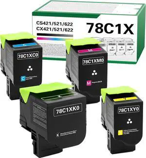 78C10 CS421 CS521 High Yield Toner Cartridge Compatible for Lexmark CS421 CS521 CS622 CX522 CX421 CX622 CX625 Printer with 78C10K0 78C10C0 78C10M0 78C10Y04 Pack