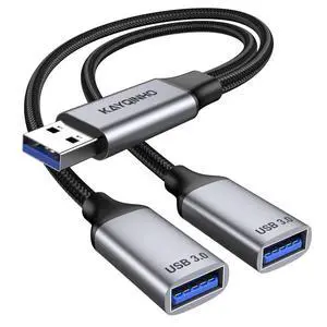 USB 3.0 Splitter 1 in 2 Out, USB Splitter Y Cable, USB Male to 2 Female Cable for PC, Tablet, Laptop, MacBook, Keyboard, PS4, PS5, Mouse, FlashDrive, LED, Etc.- Cable Length: 6 ft.