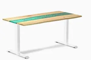 Desky Resin Hardwood Office Desk - Walnut Emerald River / 60 x 30 in / White