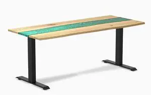 Desky Resin Hardwood Office Desk - Walnut Emerald River / 48 x 30 in / Matte Black