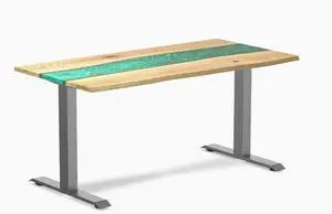 Desky Resin Hardwood Office Desk - White Ash Emerald River / 60 x 30 in / Space Gray