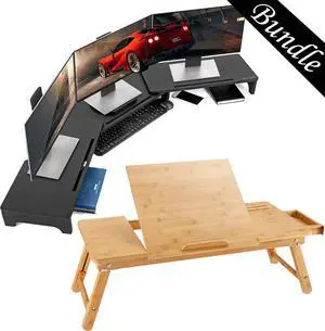 Nnewvante 27.95in Laptop Desk Left-Right Handed and 60 inch Large Bamboo Triple Monitor Stand for Desk,Black