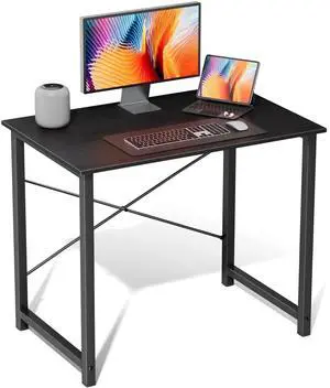 Small Computer Desk 31 Inch Writing Desk with Storage Bag Iron Hook Metal Frame for Home, Black