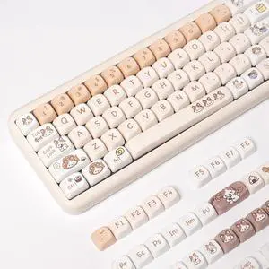 MOA Profile PBT Keycaps,132 Keys Janese Style Keycap Set with Cute Icons, Dye-Sublimation, MOA Profile,Cream Brown Theme for Most 60% 65% 75% 80% 100% US Layout Cherry MX Switches Mechanical Keyboard