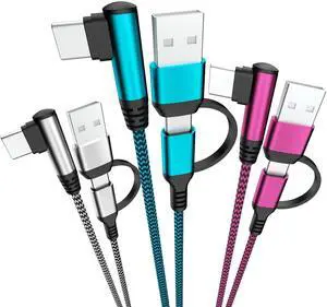 USB C Cable 60W 90°Right Angle Type C Charger Fast Charging Cord [3-Pack 6FT] 2 in 1 Multi USB A/C to USB-C Cables for iPhone 15 Pro Max iPad Pro AIR/Mini 6 MacBook Galaxy S23/S22