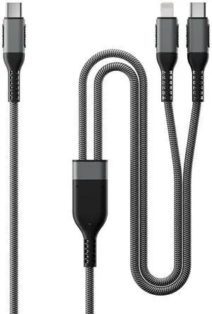 CableCreation [MFi Certified USB C to USB C & Lightning Cable, 6FT 60W Nylon Braided 2-in-1 Fast Charging Cord for iPhone 16/15/14/13 Pro Max, iPad, Galaxy, Google Pixel, Moto G53