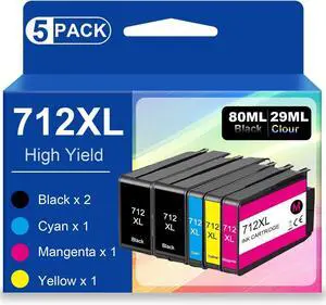 TCT 712XL Black Ink Cartridge 2 Pack - Premium Compatible Replacement for HP 712XL 3ED71A Black High Yield Works With HP DesignJet T650 T630 T250 T230 T210