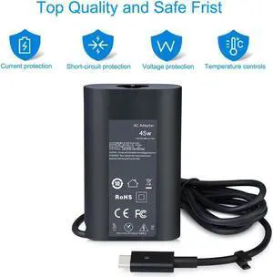 45W USB-C Charger Fit for DELL XPS 11 XPS 12 XPS 13 9360 9370 9333 Inspiron 14 7437 Series