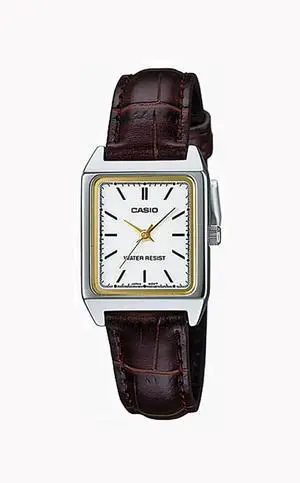 Casio Women's Brown Analog Watch with White Dial - LTP-V007L-7E2UDF