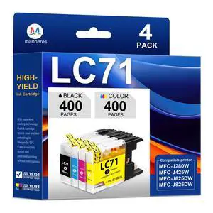 LC71 Ink Cartridge 4 Pack-Black Cyan Magenta Yellow Replacement for Brother LC75 LC71 LC79 XL to Use with MFC-J280W MFC-J425W MFC-J625DW MFC-J825DW MFC-J835DW Printer
