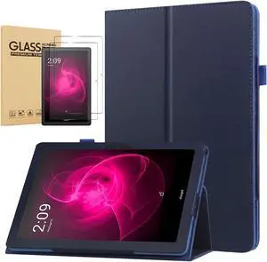 Case for T-Mobile Revvl Tab 5G 10.36" Tablet 2023 Release - Slim Lightweight Folio Stand Cover PU Leather Case Cover with Auto Sleep/Wake + 2 Pieces Glass Screen Protector (Navy Blue)