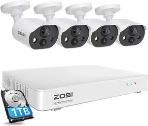 ZOSI 5MP Lite Home Security Camera System with 1TB Hard Drive,8CH H.265+ CCTV DVR,8pcs 1080P 1920TVL Weatherproof Surveillance Cameras,80ft Night Vision,Motion Alert,Remote Access for 24/7 Recording