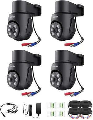 ZOSI 4 x 1080p HD-TVI Surveillance Camera Outdoor Indoor, 360 Pan Tilt 2MP Wired Security Weatherproof CCTV Dome Camera with Audio Recording, IR Night Vision, Only Work with Our DVR