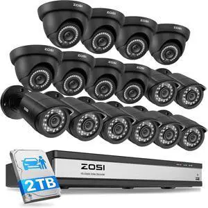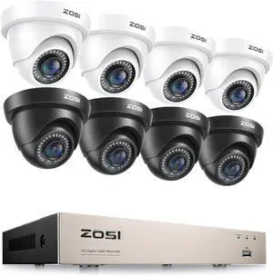 ZOSI 4-Camera 1080P Hybrid DVR Security System with 1TB Hard Drive, 8CH H.265+ 4-in-1 HD TVI DVR Recorder, 4X 2MP Dome Cameras, AI Human/Vehicle Detection, Night Vision, Remote Access.