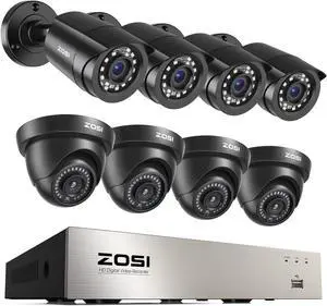 ZOSI H.265+ Home Security Camera System Outdoor Indoor, 8 Channel 5MP-Lite CCTV DVR Recorder and 4pcs Weatherproof Surveillance Bullet Camera,Night Vision,Remote Access,Motion Alerts (No HDD)