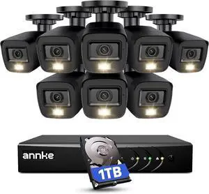 ANNKE 3K Lite Wired Security Camera System with AI Human/Vehicle Detection, H.265+ 8CH Surveillance DVR with 1TB Hard Drive and 8 x 1080p HD Outdoor CCTV Cameras, Color Night Vision, Smart Dual Light