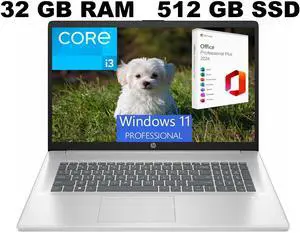 HP 17 Laptop, 17.3" HD+ (1600 x 900) Touchscreen, Intel Core i3-N305 8 Cores Processor, Intel UHD Graphics, 32GB DDR4  512GB PCIe SSD, Fingerprint Reader, Wi-Fi 6, Windows 11 Pro