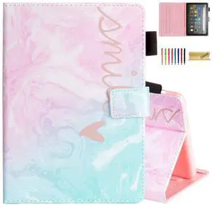 Dteck for Fire HD 8 (12th/10th Generation) Smart Folio Case 2024/2022/2020 Release (8") with Auto Sleep Wake/Stand/Adjustable Viewing Angle/Stylus, PU Leather Protective Cute Cover, Pink Blue Smile