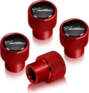 Cadillac Script Nameplate in Black on Red Aluminum Tire Valve Stem Caps