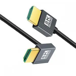 BUCIER 8K 90 Degree HDMI Cable, Left Angle HDMI Male to Male Cable,48Gbps Ultra Thin HDMI Cord OD2.5mm, Support 8K@60Hz, 4K@240Hz, Dynamic HDR, eARC, for GH5S, PS5, Xbox One Monitor,PC.1FT/30cm