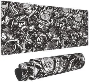 Gaming Mouse Pad, 31.5 x 11.8 Inch, Composite, Rectangular, Large Non-Slip Rubber, Auto Car Part Engine Design