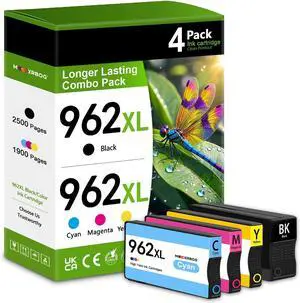 962XL Ink Cartridges Combo Pack (4-Pack, BK/C/M/Y) - Replacement for HP 962 962XL Ink Cartridges to Works with OfficeJet 9012e OfficeJet Pro 9010 9019 9020 9022e 9025 9028e Printer