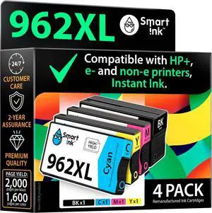 Smart Ink Remanufactured Ink Cartridges Replacement for HP 962XL 962 XL Combo Pack (962XL Black, Cyan, Magenta, Yellow) to use with OfficeJet Pro 9015e 9018e 9025e 9012e 9015 9010 9012 9018 9020 9025