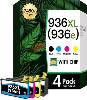 936e Ink Cartridge High Yield with Chip Replacement for HP 936 936XL 936e Ink Cartridges Combo Pack for OfficeJet 9122e 9110b 9125e 9128e 9130b 9135e 9730e Printer (1 Black/Cyan/Magenta/Yellow)
