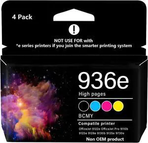 936e 936XL Ink Cartridges Compatible for HP 936 Ink Cartridges Works with OfficeJet 9122e; OfficeJet Pro 9110b, 9125e, 9128e, 9130b, 9135e; OfficeJet Pro Wide Format 9730e (936e BK C M Y)