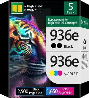 936e 936XL Ink Cartridges (5-Pack with Chip High Capacity) Replacement for HP 936 Ink for OfficeJet 9122e OfficeJet Pro 9110b 9125e 9128e 9130b 9135e 9120e OfficeJet Pro Wide Format 9730e Printers