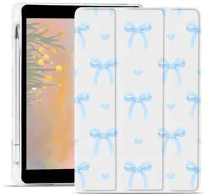 AdorableWhimsy Cute Bowknot Case for iPad (A16) 11th Gen 2025 11" /iPad 10th Generation 2022 10.9" Kawaii Bow Aesthetic Design Trifold White Leather Protective Cover Soft TPU Back - Bow/Blue