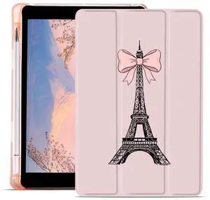 AdorableWhimsy Cute Bow Eiffel Tower Printed Case for iPad 10th Generation 2022 10.9" / iPad (A16) 11th Gen 2025 11" with Pencil Holder Auto Wake/Sleep Protective Case Aesthetic Pink Leather Cover
