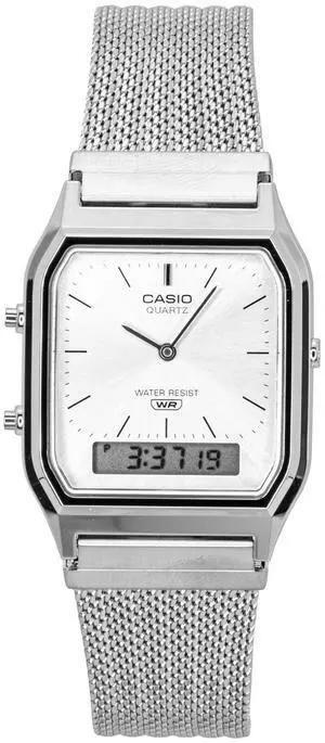 Casio Vintage Analog Digital Stainless Steel Mesh Bracelet Silver Dial Quartz AQ-230EM-7A Unisex Watch