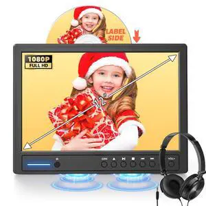 Arafuna 12" Portable DVD Player for Car with Headphone, Car DVD Player with Headrest Mount, Suction-Type Disc in, Headrest DVD Player Support HDMI Input, AV in/Out,1080P Video, USB/SD Card Reader